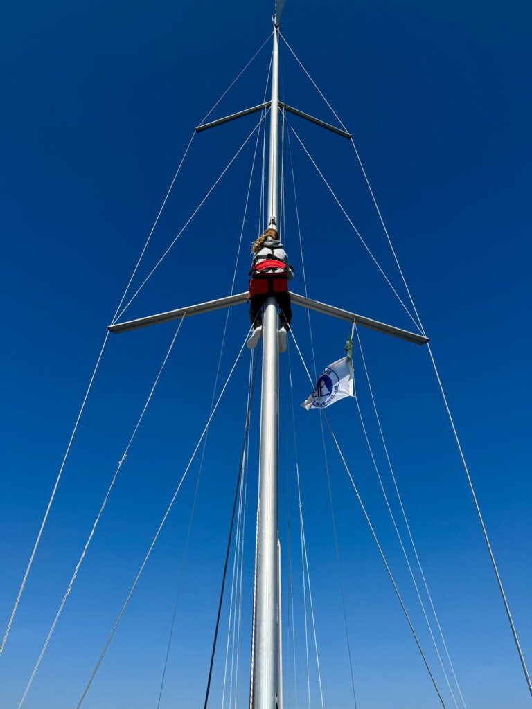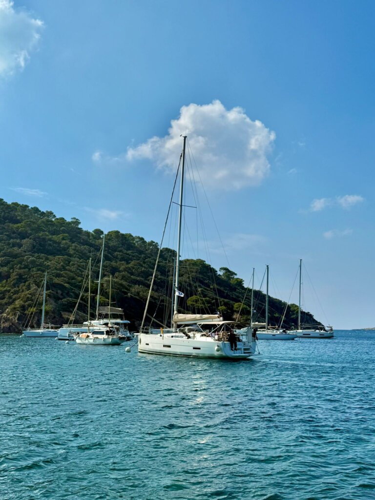 Réveil à 6:30 pour préparer le bateau. Nous avons partagé notre premier déjeuner à bord. Puis, nous avons eu un briefing sur les règles de sécurité. Nous avons largué les amarres ! Pendant le trajet, nous avons eu 2-3 aventures. Comme Elsa et Manon qui ont dû grimper au mat car quelque chose coinçait la voile. Nous nous sommes également retrouvés au milieu de la régate. Nous avons tous pu barrer (conduire le voilier). Vers 17h, nous sommes arrivés au mouillage dans une baie de Porquerolles. Quand nous sommes arrivés, nous avons lancé l’ancre pour la nuit. Nous nous sommes baignés puis nous avons préparé le souper. Ce soir était moins stressant que le premier soir.
