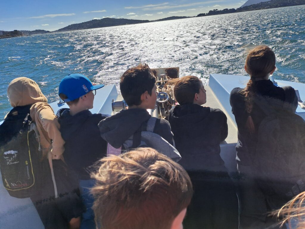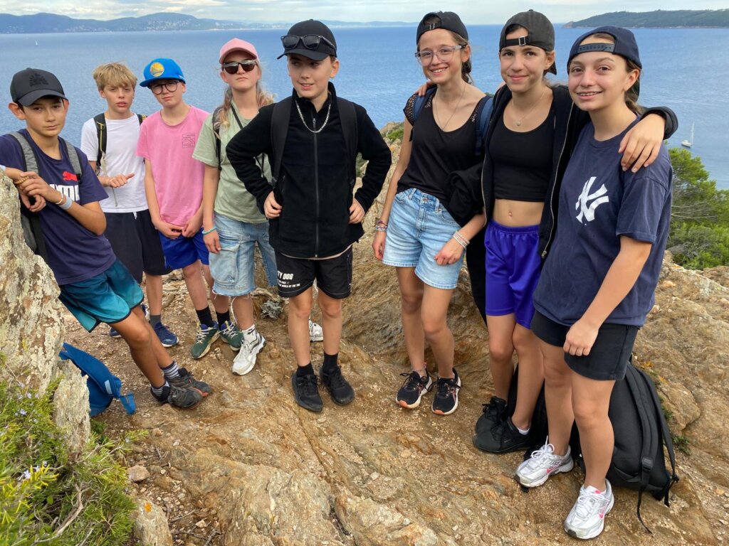 Ce matin après le réveil nous sommes partit pour deux heure de navigation jusqu’à Port-Cros. À notre arrivé nous avons marché durant deux heures avec une petite escale sur une petite plage avec un petit ponton ou certain d’entre nous en on profité pour sauté. Arrivé de l’autre côté de l’ile, au mouillage, nous avons eu l’autorisation de nous baigner proche de notre bateau. Nous avons nourris les poissons tout en filmant avec la gopro de Augustin, le rendu est magnifique. Nous avons cru voir une bouteille en plastic à la mer et en la ramassant nous pensons que c’est un carcasse de mollusque