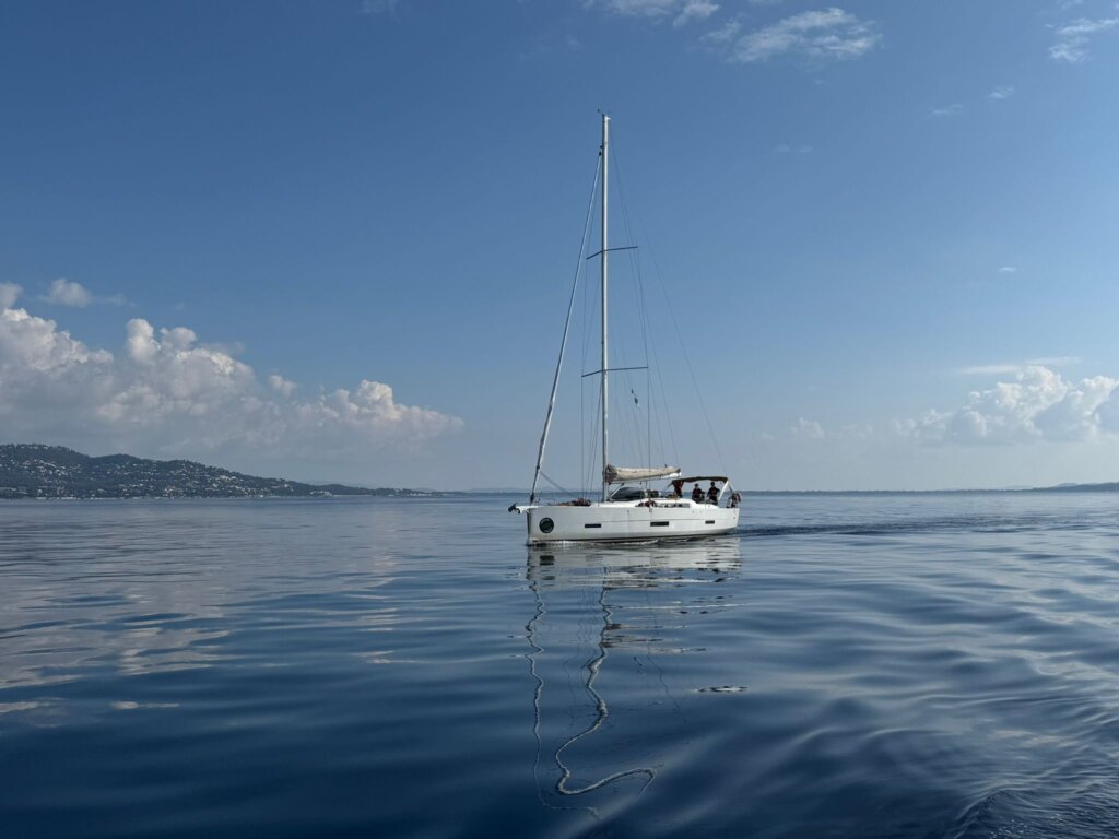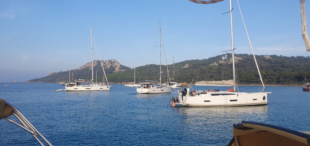 Während dem Sonnenaufgang haben wir gefrühstückt. Dann haben wir uns bereit gemacht und sind in die nächste Bucht gefahren, wo wir Mittag gegessen haben. Wir haben noch ein bisschen gebadet. Es waren viele Fische und auch Quallen, die wir gesehen haben. Nach dem Mittag haben wir die Segel gesetzt und Kurs genommen nach Lavandou. Es hatte sehr viel Wind, was uns aber ermöglicht hat mit einer hohen Geschwindigkeit zu Segeln. Es war ein wundervoller Tag.