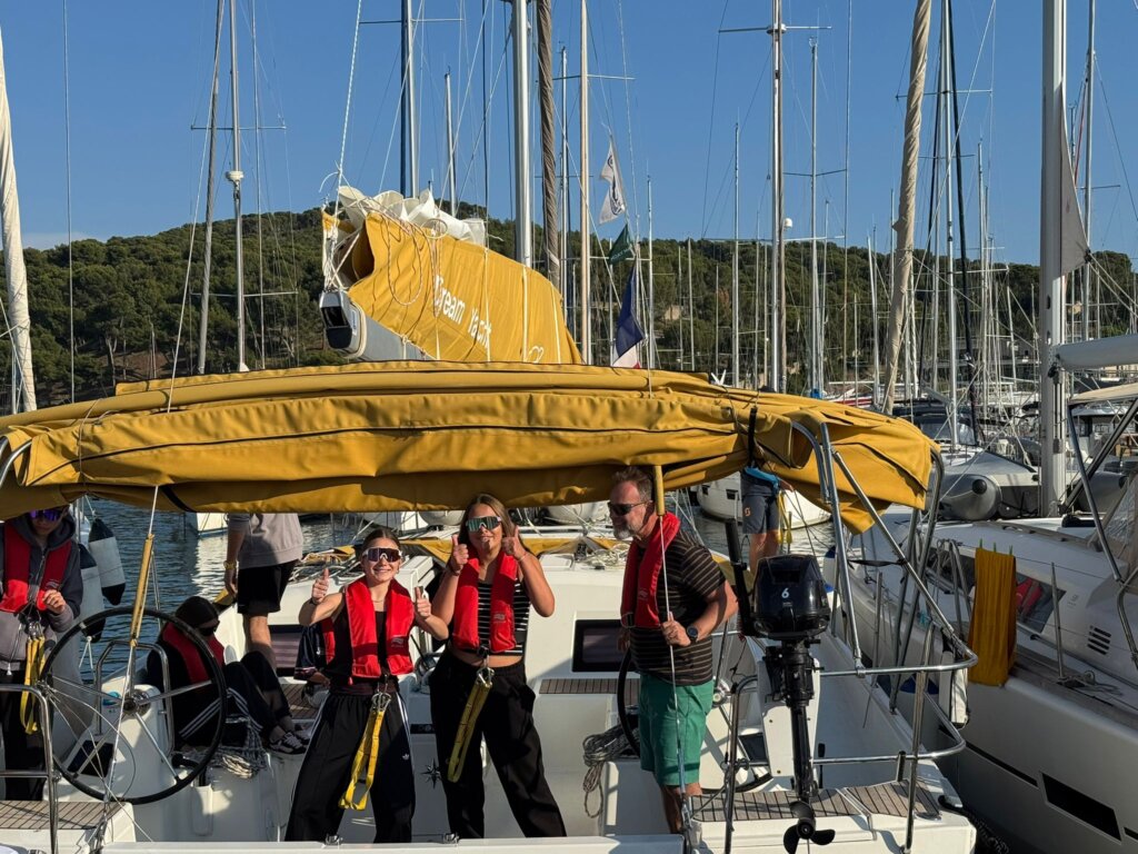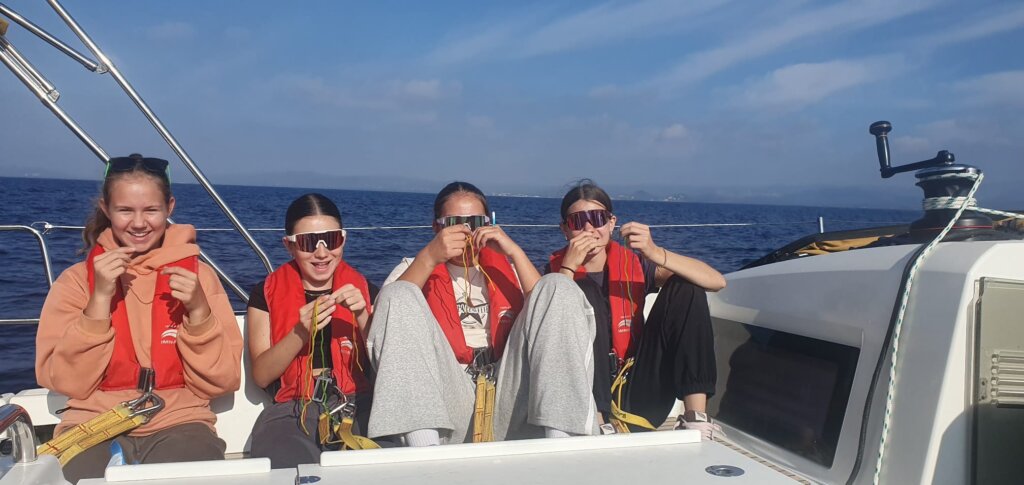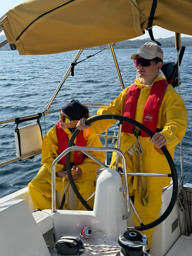 Nach der erholsamen Nacht haben wir um 8:00 Uhr gefrühstückt. Danach machten wir mit unserem CO Skipper das briefing. Wir lernten 2 Knoten und bekamen unsere Schwimmwesten. Dann machten wir das Schiff start klar und fuhren los. Auf dem Meer machten wir zum ersten mal das Segel auf. Es war ein cooles gfühl das erste mal zu segeln, einigen von uns wurde mulmig. Zu Mittag hat es Gusgussalat gegeben, mit musik ging es dan weiter zur Bucht. In der Bucht angekommen gingen wir baden. Es war kalt aber dafür war das Wasser türkis. Zu Abendessen gibt es Poulet mit Reiz. Wir freuen uns alle auf morgen.
