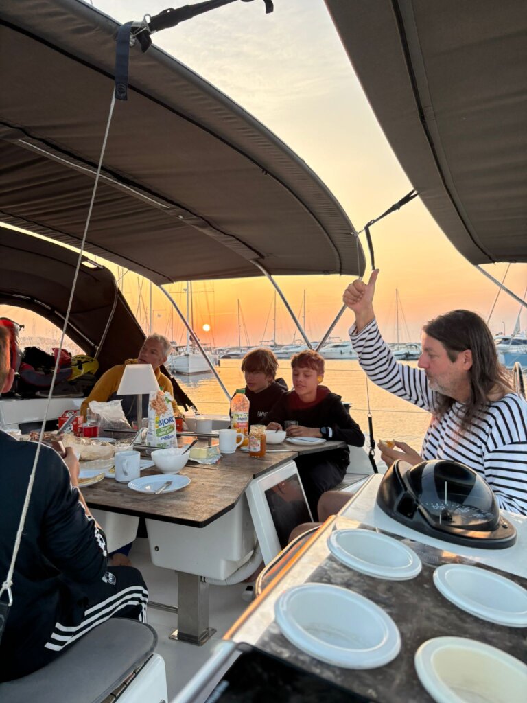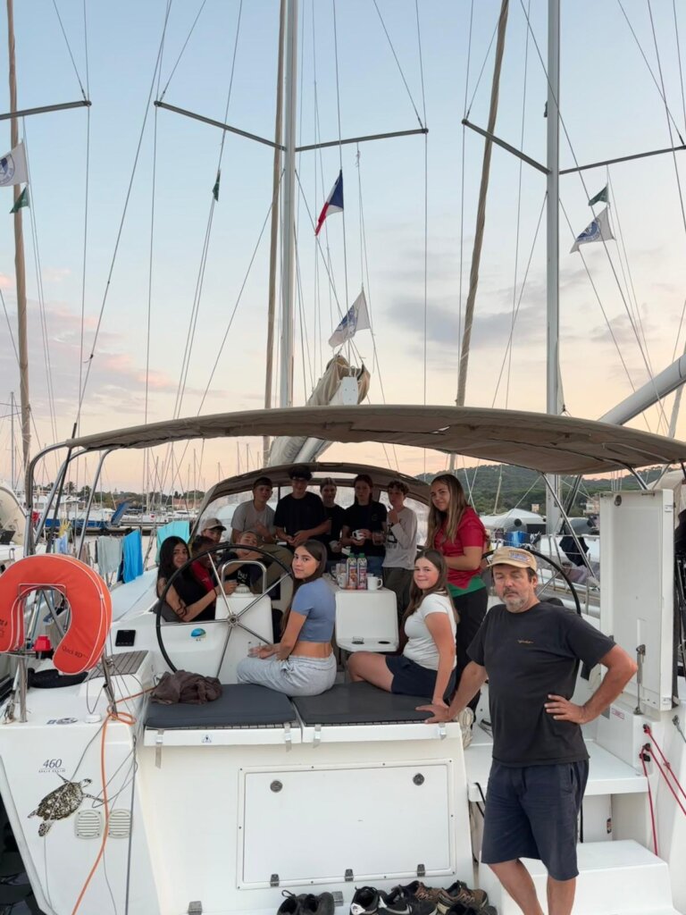 Aujourd’hui nous sommes malheureusement le dernier avant le départ. Aujourd’hui nous avons enfin pu re naviguer, de porquerolle à port-pin-Rolland. Nous nous sommes levé de bon matin avec un magnifique lever de soleil et un arc-en-ciel dans notre cœur. Nous avons naviguer pendant 6 heures. Après l’aterrage nous avons nettoyé le bateau. Puis nous nous sommes préparé pour aller au restaurant. Nous avons fais un mouillage pendant la navigation. Nous avons nagé dans une eau très clair, nous avons vue des pieuvres! C’était incroyable. Le reste de notre temps libre nous avons parler avec nos amis des autres équipage. C’est très triste que ça soit déjà la fin…