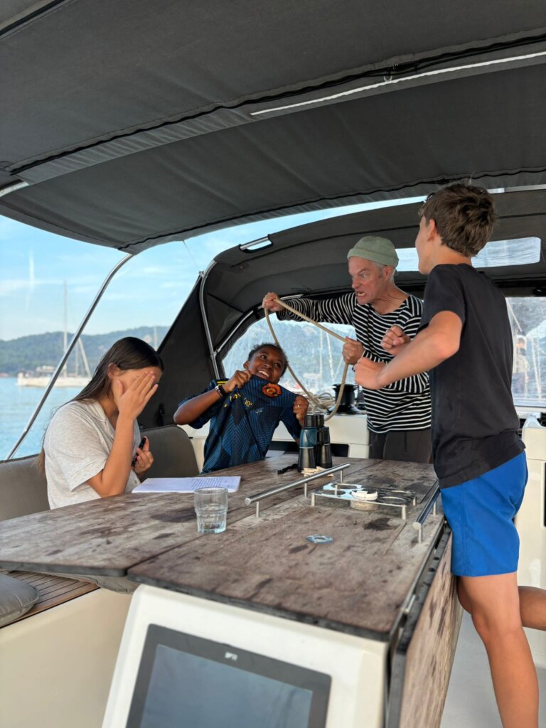 Curieux de tout, ils ont hâte de découvrir la vie en mer : apprendre à faire des nœuds sans s’emmêler les doigts, partager les cabines qui deviendront leur “chez eux flottant”, et goûter à l’aventure au rythme des vagues.